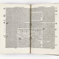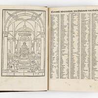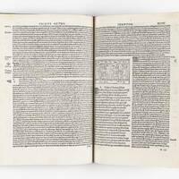Testo disposto su due colonne. Iniziali xilografiche. Frontespizio inserito in elaborata