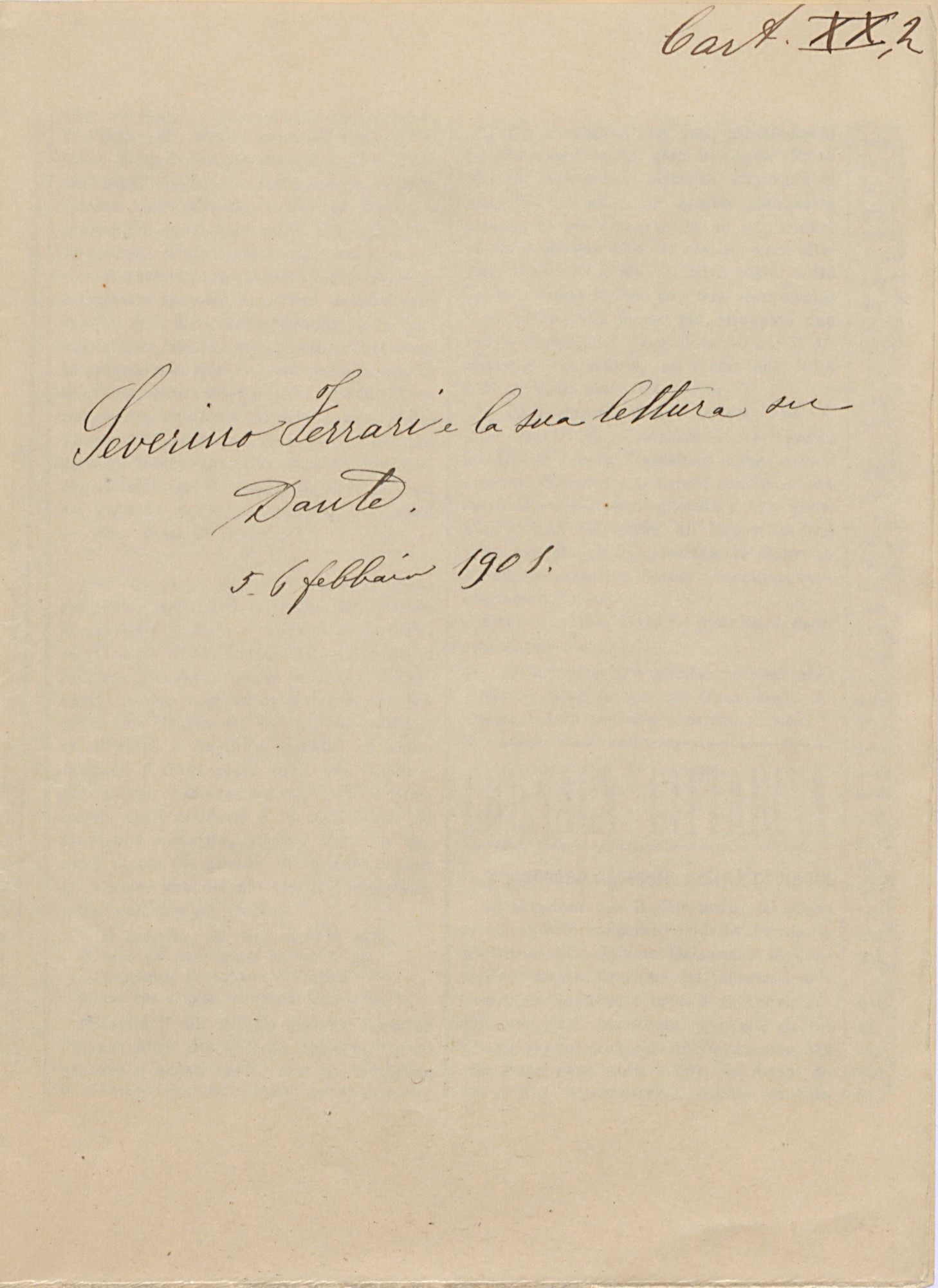 Giosue Carducci, Severino Ferrari e la sua lettura su Dante, 5-6 febbraio 1901, Biblioteca di Casa Carducci, Cart. XX, 2_CARTONE XX, 2_SEVERINO FERRARI E LA SUA LETTURA SU DANTE_00001