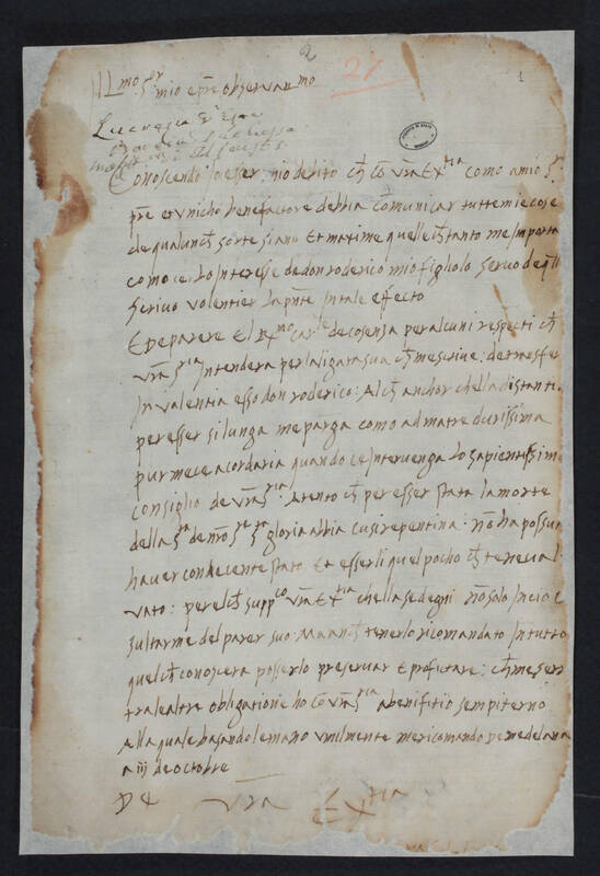 Part of 15. Autografo di Lucrezia ad Ercole I sul figlio don Rodrigo Borgia. <Medelana>, 3 ottobre 1503.
