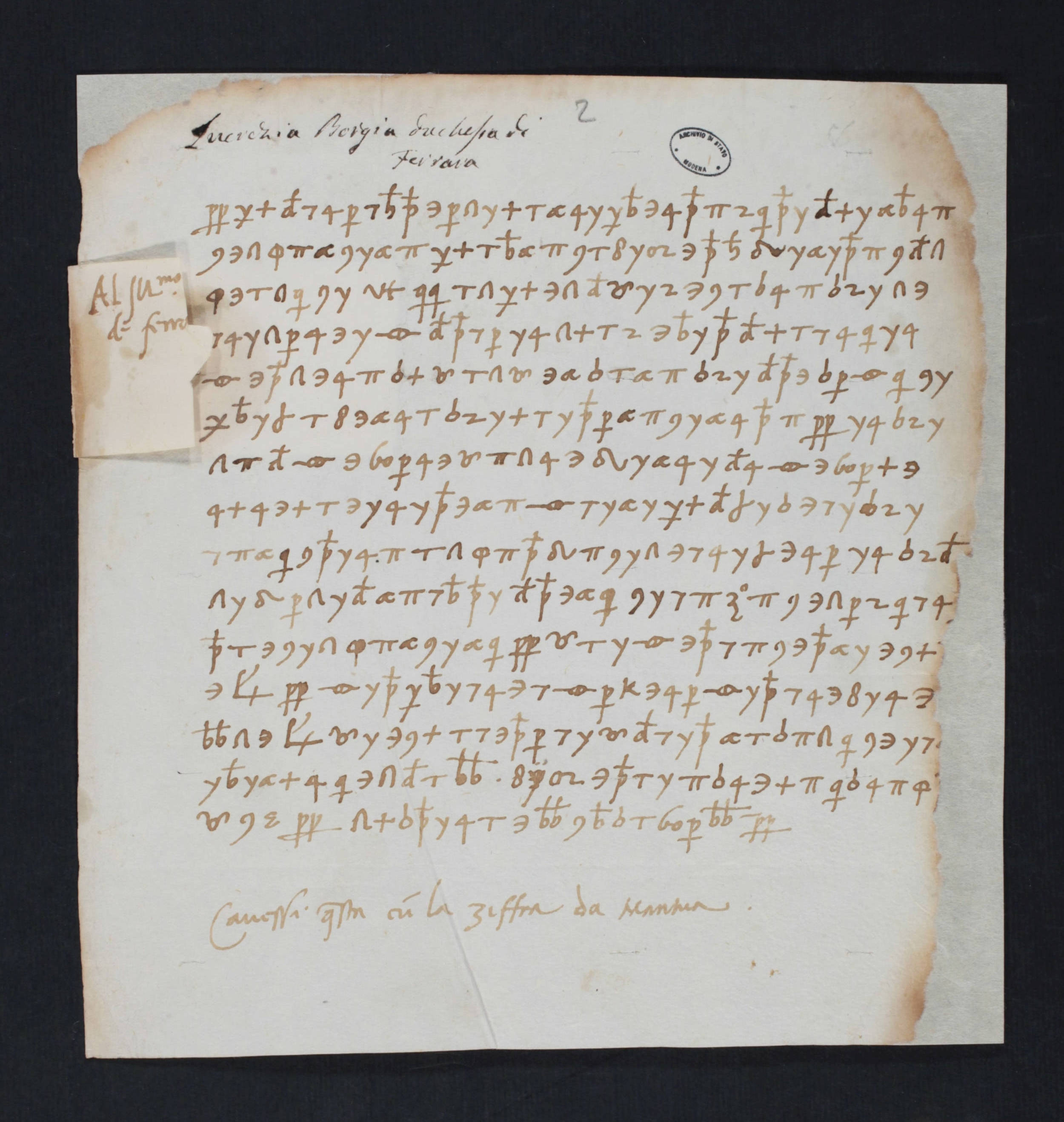 Part of 21. Lettera cifrata di Lucrezia Borgia al marito Alfonso I. Ferrara, 8 ottobre 1510.