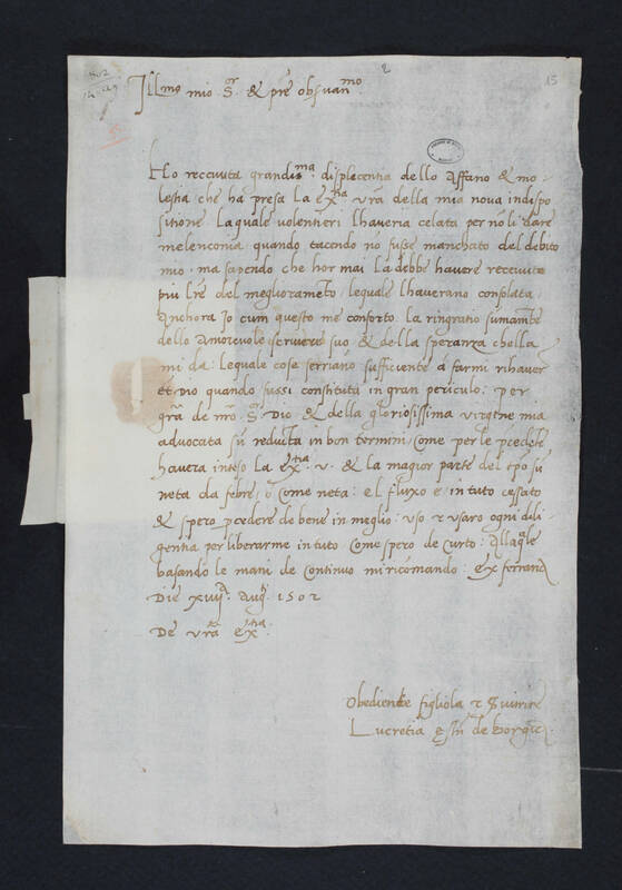 Part of 48. Lettera di Lucrezia ad Ercole I d'Este. Ferrara, 14 agosto 1502.