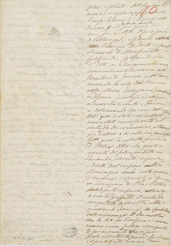 Part of Giosue Carducci, Introduzione allo studio su Dante e il secolo XIV. Lingua e letteratura dal 1183 al 1268, Condizioni politiche d’Italia, lezione II e III del corso, Biblioteca di Casa Carducci, Cart. XXI, 1, II