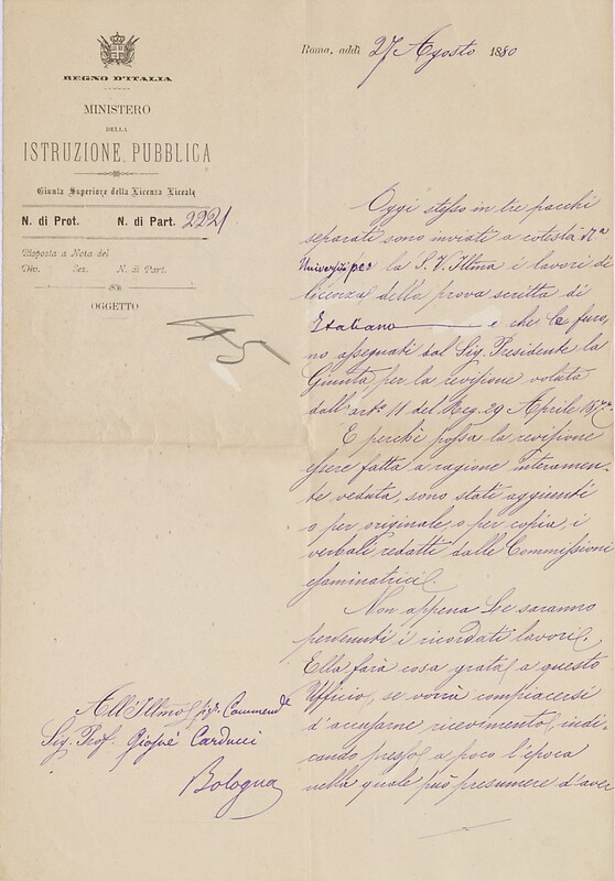 Part of Giosue Carducci, I lettori, Biblioteca di Casa Carducci, Cart. XXVII. 1. IV