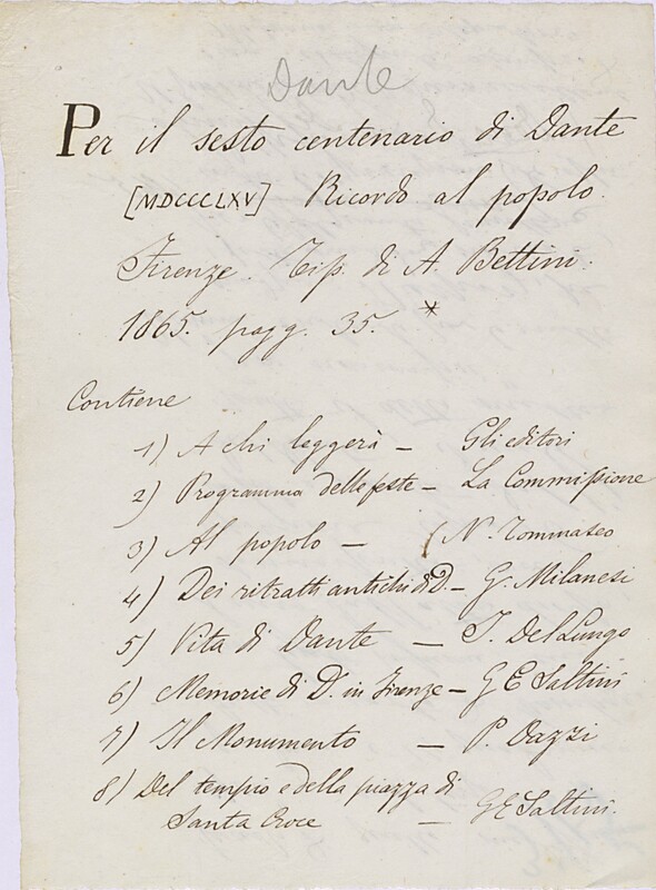 Giosue Carducci, I lettori, Biblioteca di Casa Carducci, Cart. XXVII. 1. IV_CARTONE XXVII,1_STORIA DELLA LETTERATURA DANTESCA_00109