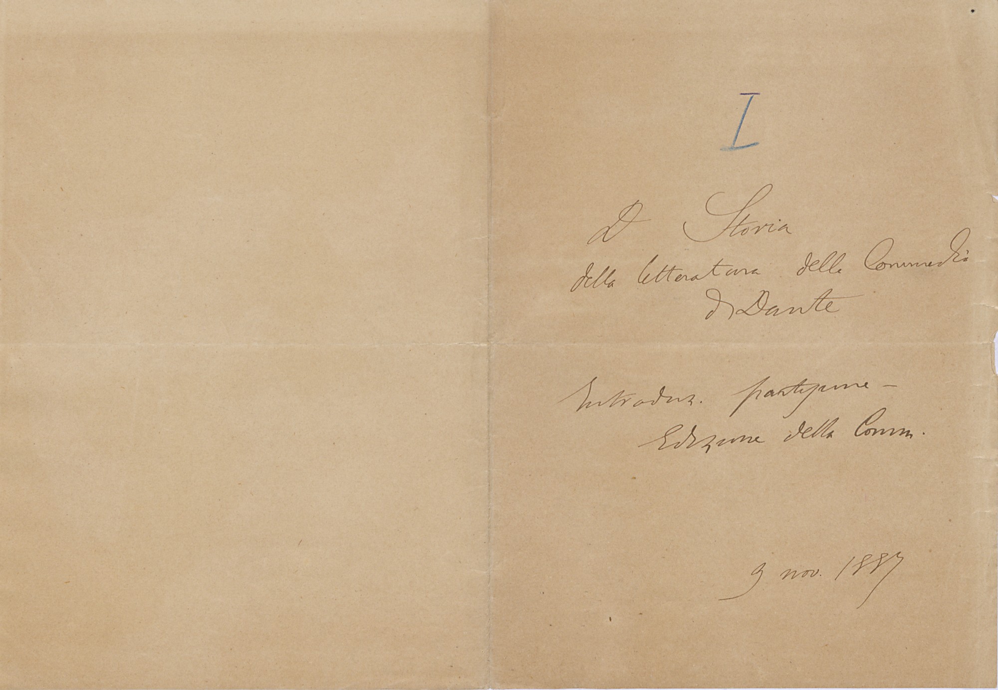 Giosue Carducci, Introduzione a una edizione della «Divina Commedia», 9 nov. 1887, Biblioteca di Casa Carducci, Cart. XXVII. 1. I_CARTONE XXVII,1_STORIA DELLA LETTERATURA DANTESCA_00003