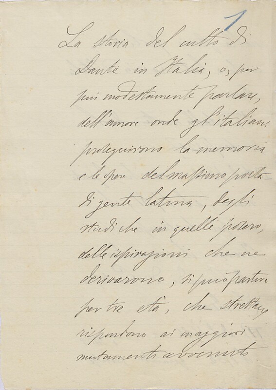 Giosue Carducci, Introduzione a una edizione della «Divina Commedia», 9 nov. 1887, Biblioteca di Casa Carducci, Cart. XXVII. 1. I_CARTONE XXVII,1_STORIA DELLA LETTERATURA DANTESCA_00005