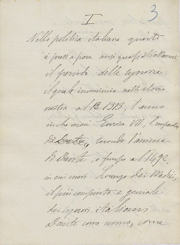 Giosue Carducci, Introduzione a una edizione della «Divina Commedia», 9 nov. 1887, Biblioteca di Casa Carducci, Cart. XXVII. 1. I_CARTONE XXVII,1_STORIA DELLA LETTERATURA DANTESCA_00009