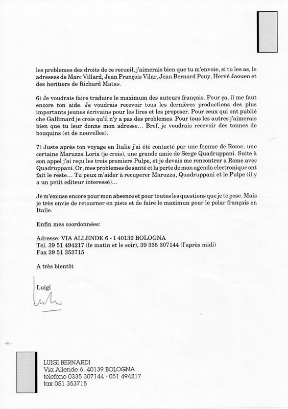 Fax da Luigi Bernardi all'attenzione di Patrick Raynal