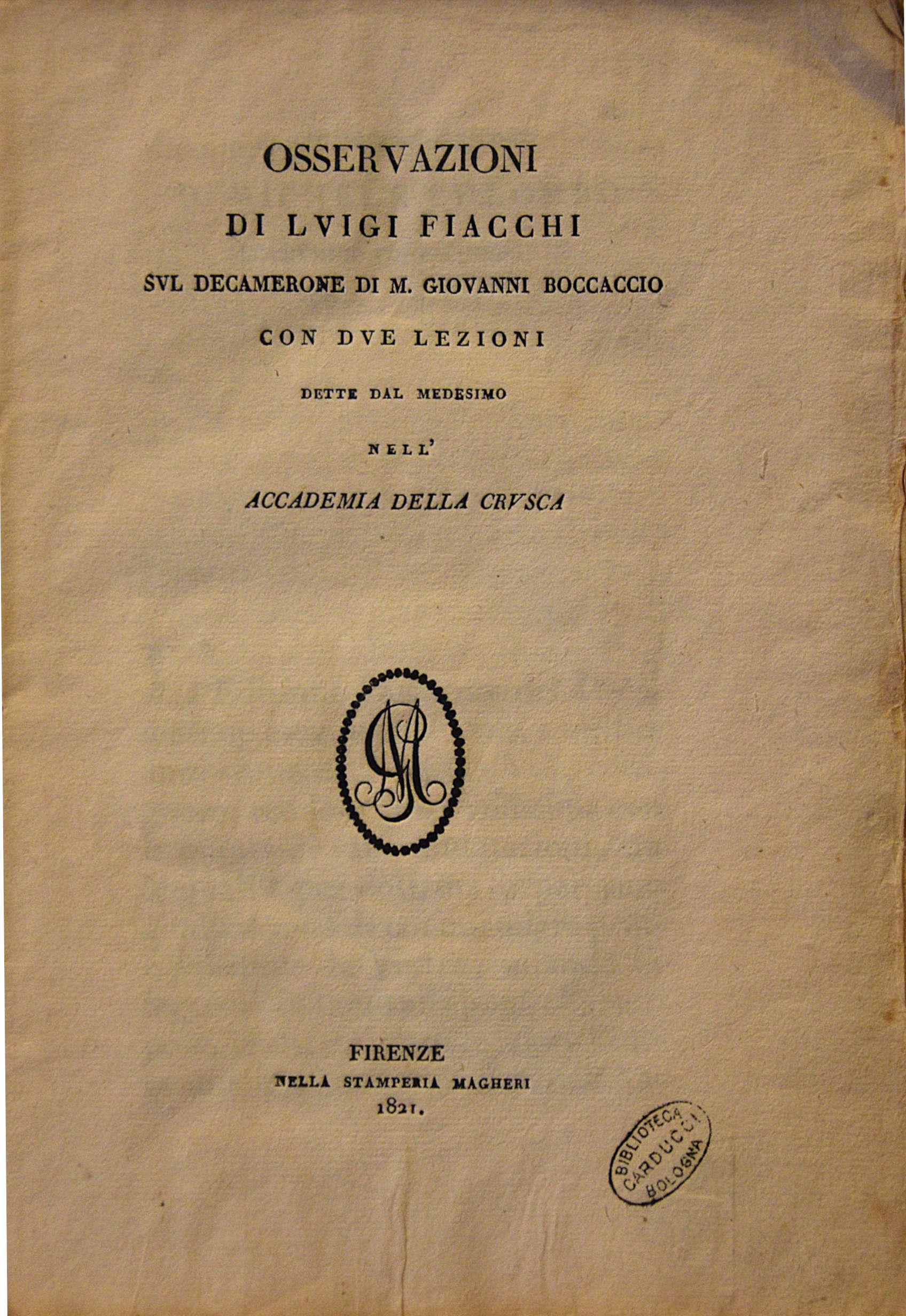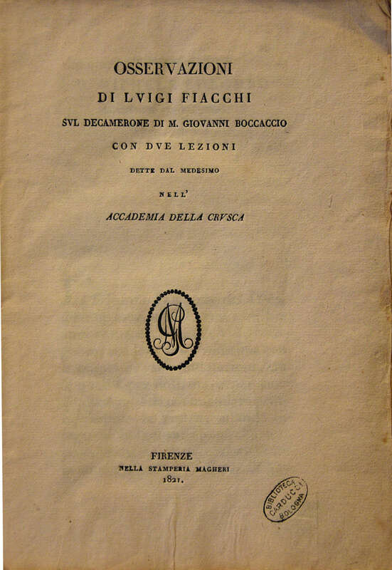 Osservazioni sul Decameron, Firenze, 1821 – frontespizio