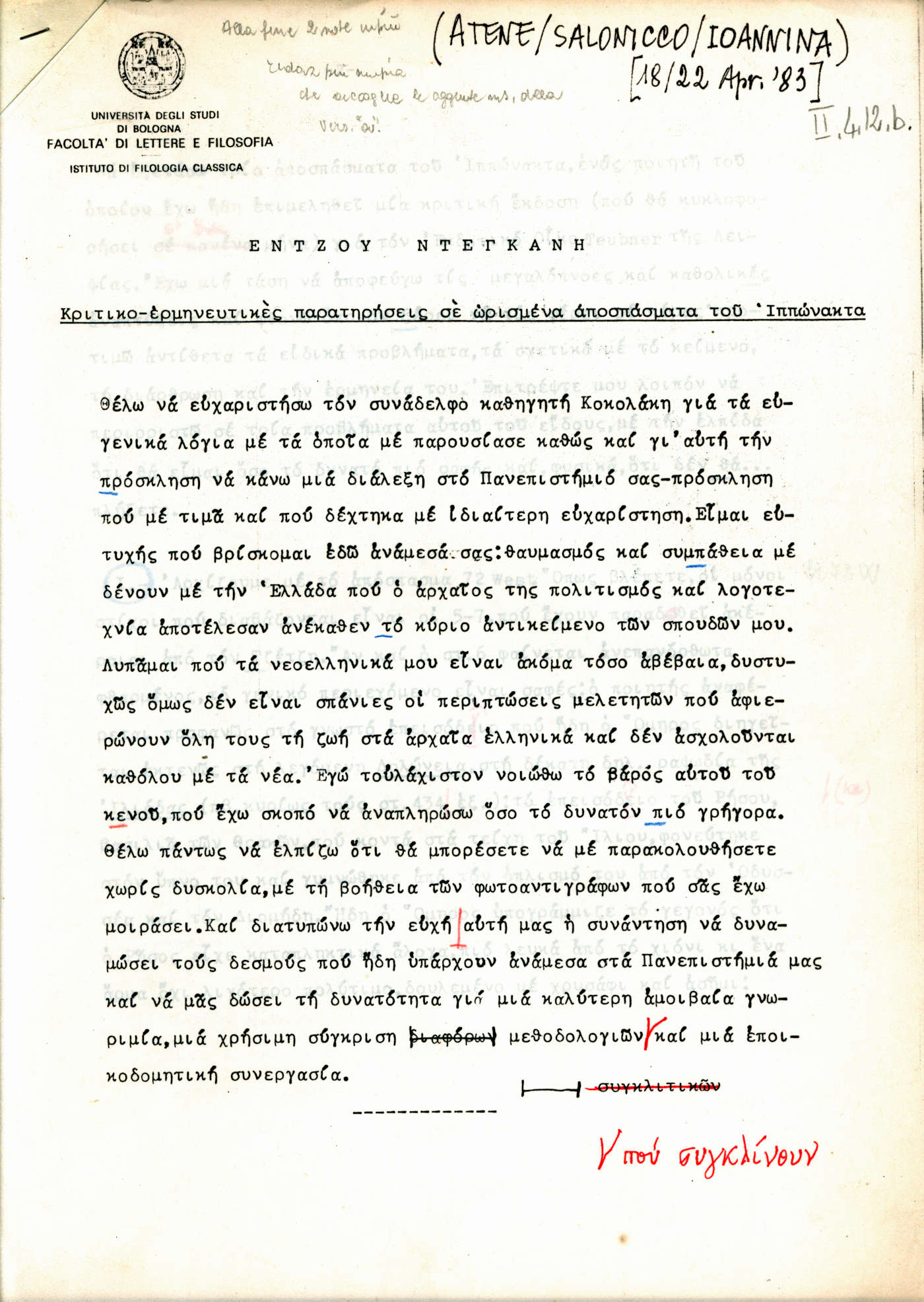 Ciclo di lezioni ipponattee in Grecia (aprile 1983)