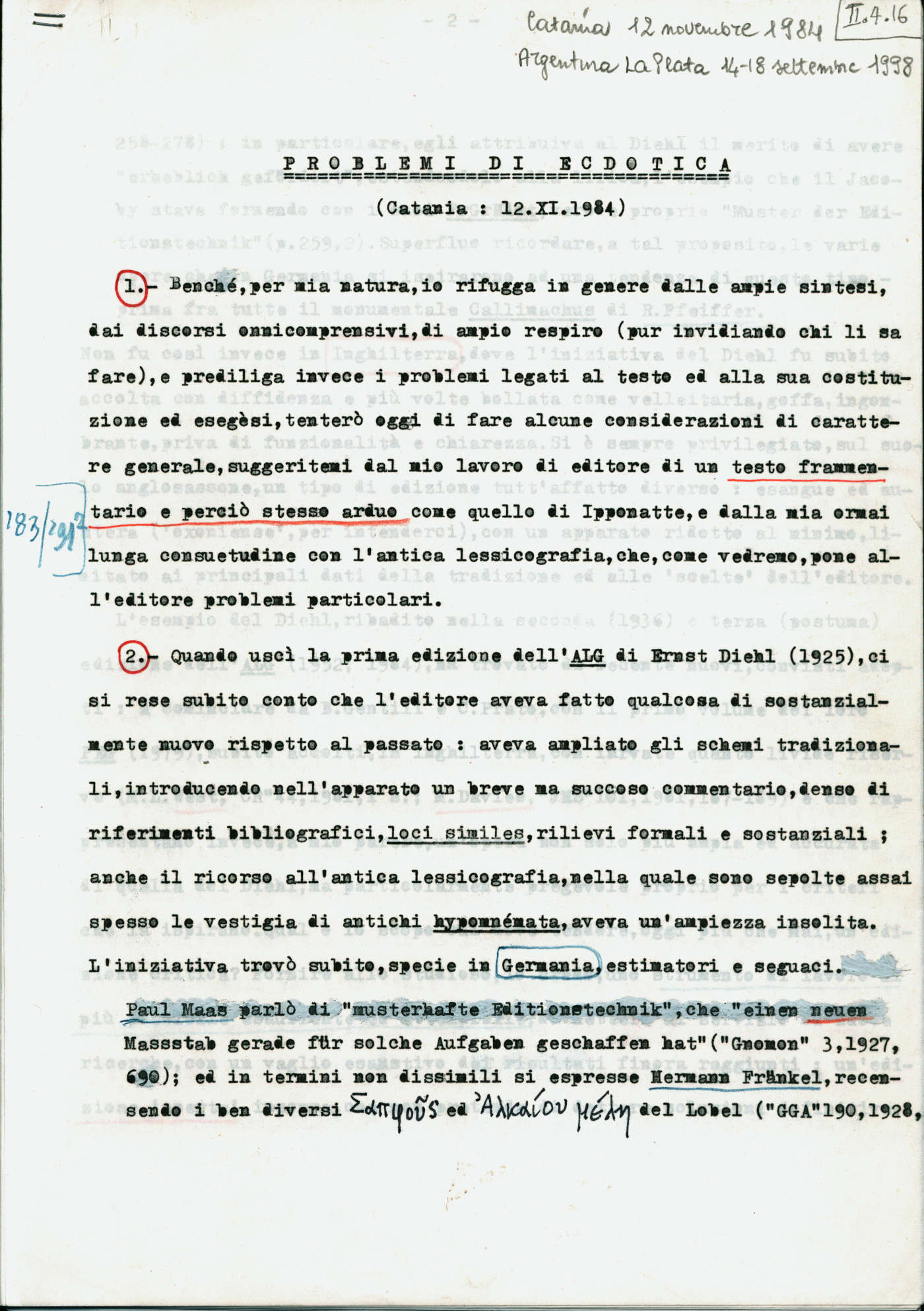 Conferenza "Problemi di ecdotica" (Catania 1984)