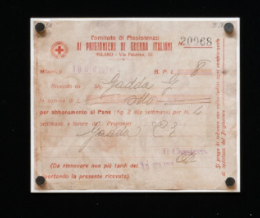 Ricevute di pacchi alimentari spediti dalla famiglia Gadda e dalla Croce Rossa Italiana