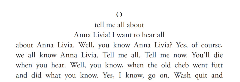 L'elemento ciclico e senza fine del romanzo è rappresentato dal flusso narrativo che si riavvolge e si ripete, mimando il movimento continuo del «riverrun» (3, 1) che sfuma il confine tra inizio e conclusione. Questo dinamismo rispecchia il concetto vichiano del ricorso, dove ogni fase storica ritorna, ma arricchita da nuove esperienze. Finnegans Wake non solo suggerisce la ricorsività del tempo, ma la rappresenta attraverso una struttura che non conosce fine, dove ogni nuovo inizio è una continuazione del passato.