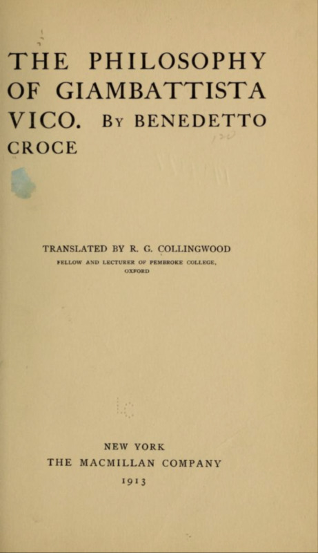 Robin G. Collingwood: “The philosophy of G. B. Vico”